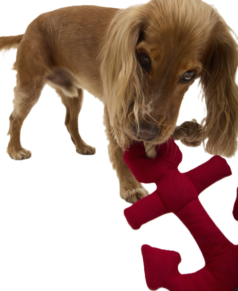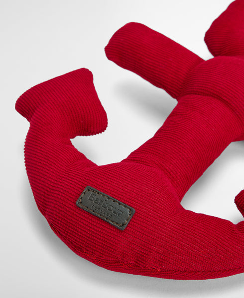 A playful pet accessory crafted in red cord fabric with natural rope detail