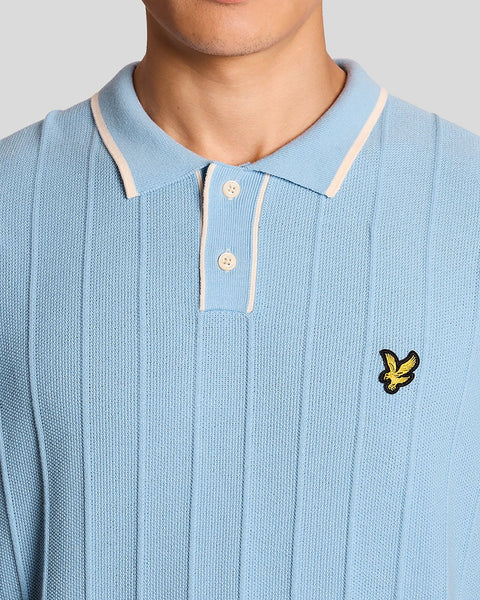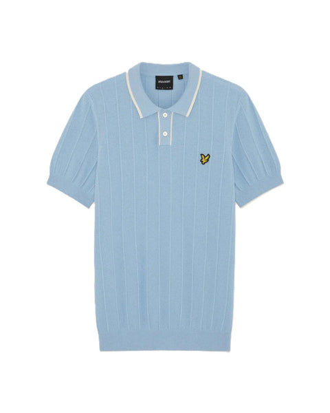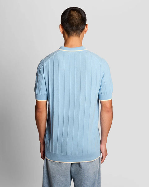 - Elevate your everyday wardrobe with this navy knitted polo shirt, crafted from textured pique knit with refined tipped detailing