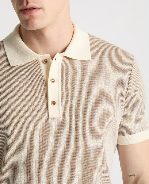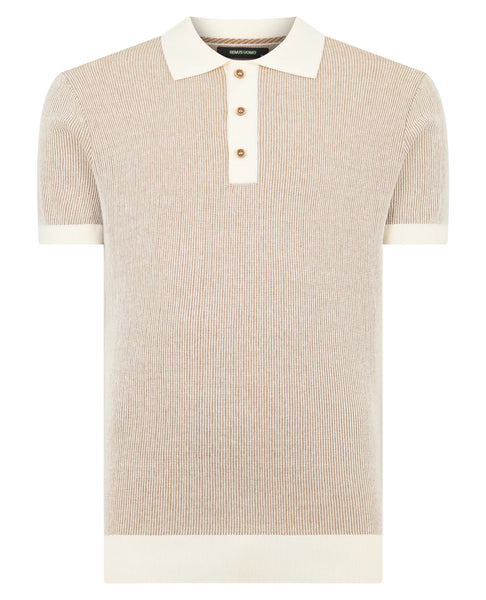 Cream Plaited Knit Polo Shirt
