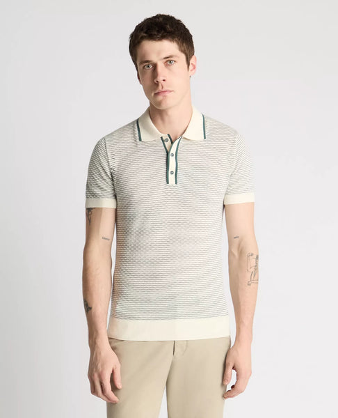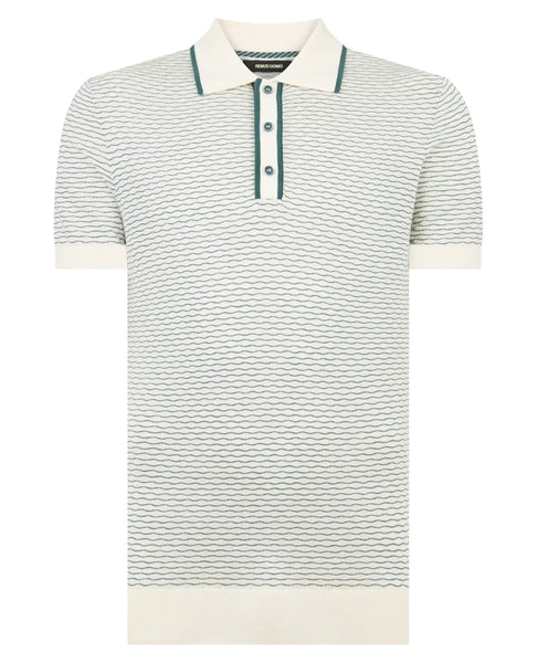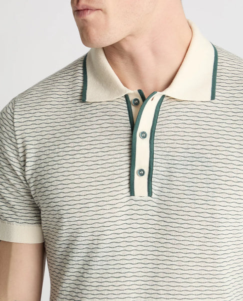 Elevate your casual wardrobe with this cream polo shirt, featuring an eye-catching wave stripe pattern that adds visual interest without compromising versatility