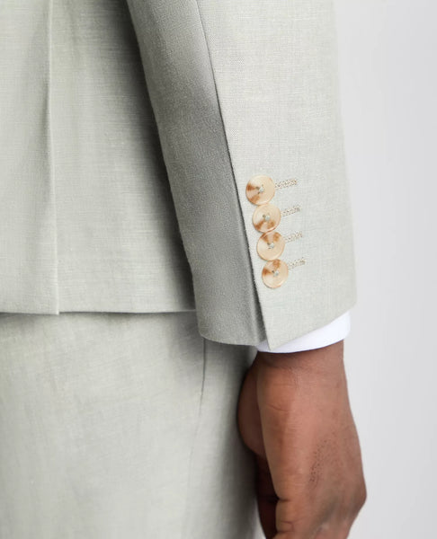 Elevate your wardrobe with this sophisticated green linen-blend jacket, expertly tailored for a sharp slim fit