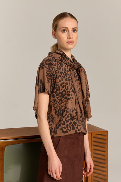 Striking blouse adorned with an all over leopard motif