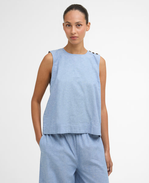 - This sleeveless blouse features a refined linen-cotton blend that keeps you cool and comfortable throughout warm weather