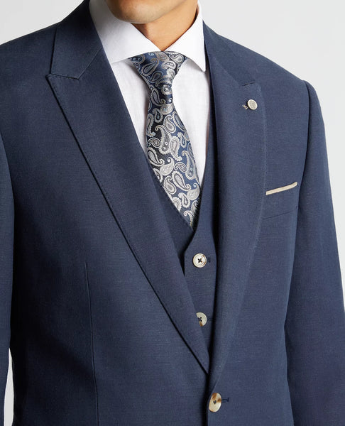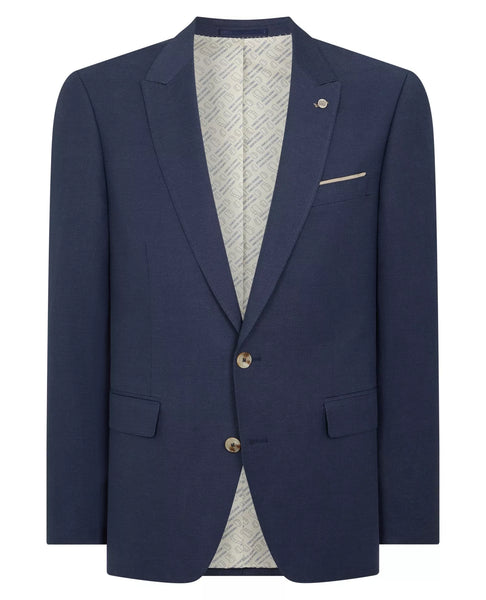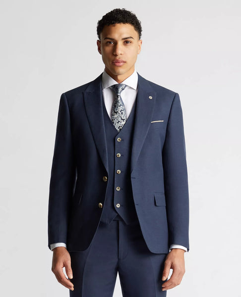 The classic peak lapel and side flap pockets deliver timeless style, while the jetted ticket pocket on the chest adds refined detail