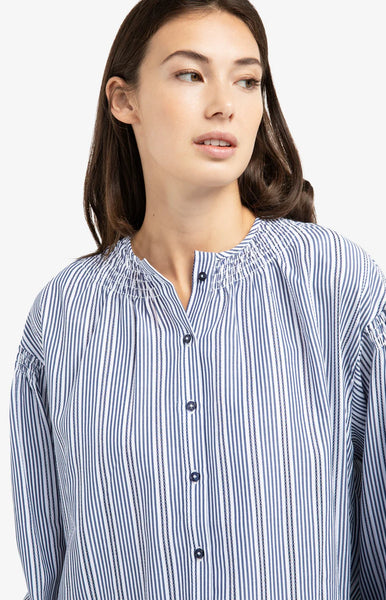 Effortless elegance meets everyday comfort in this navy striped blouse