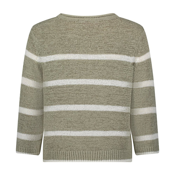 Featuring a round neckline, straight silhouette, and distinctive 3/4 sleeves with a rolled detail for added sophistication