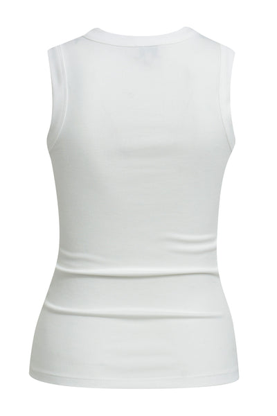 Effortless style meets comfort in this off-white sleeveless top