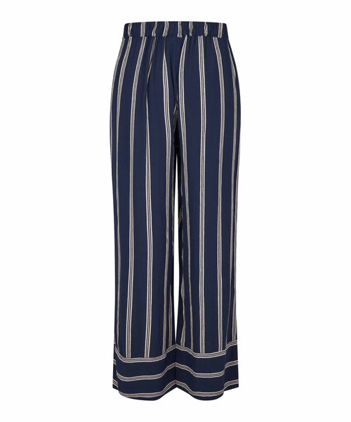 Dark blue viscose trousers featuring striking white stripes that bring effortless style to your everyday wardrobe