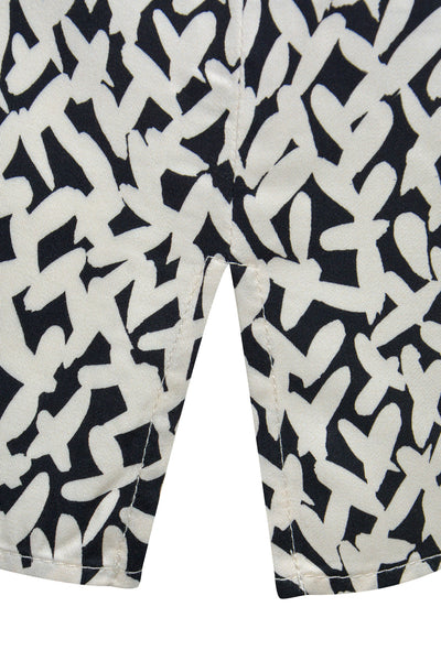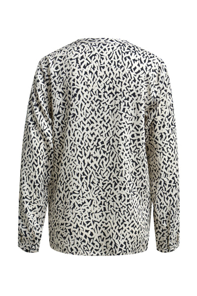 Black Print V-Neck Blouse