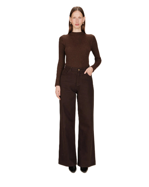 - This piece has a high waist and a slightly flared loose fit for a feminine and modern silhouette