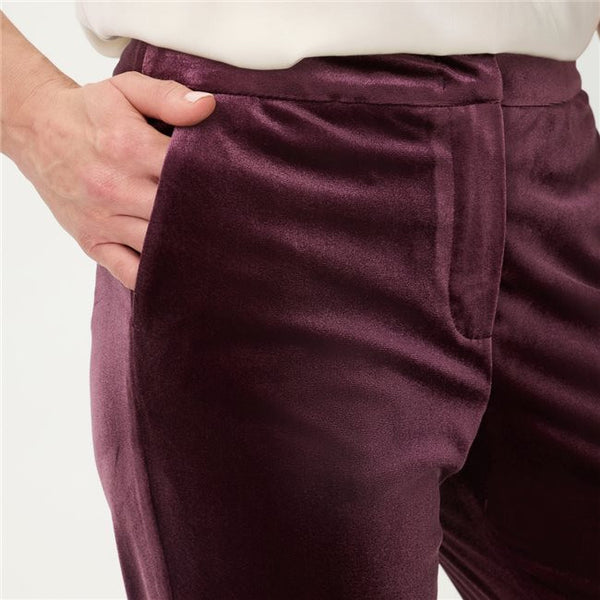 Wine Mona Fit Velvet Trousers